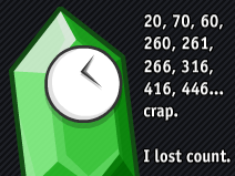 Rupee Clock, shown as a green Legend of Zelda jewel with a clock face, has become one of the most familiar faces in the Clock Crew, often seen arguing and fighting with Strawberry Clock. By Clockday 2010, RupeeClock had left the Clock Crew, despite retaining his name, so MentosClock portrayed RupeeClock as being burnt at the stake as a heretic in StrawberryClock Returns.